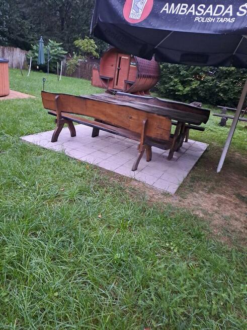 sprzedam używane ławki duże po jednej stronie 5 osób i po drugi 5 razy na 10 osób siedzisko z dużym stołem jest to ...