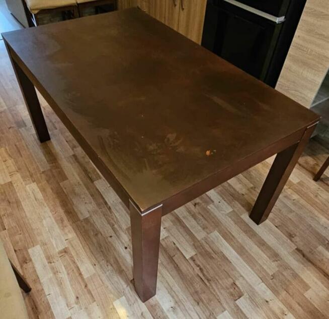 Solidny, drewniany stół jadalny w dobrym stanie. Idealny do codziennego użytku w kuchni lub jadalni. Wymiary stołu ...
