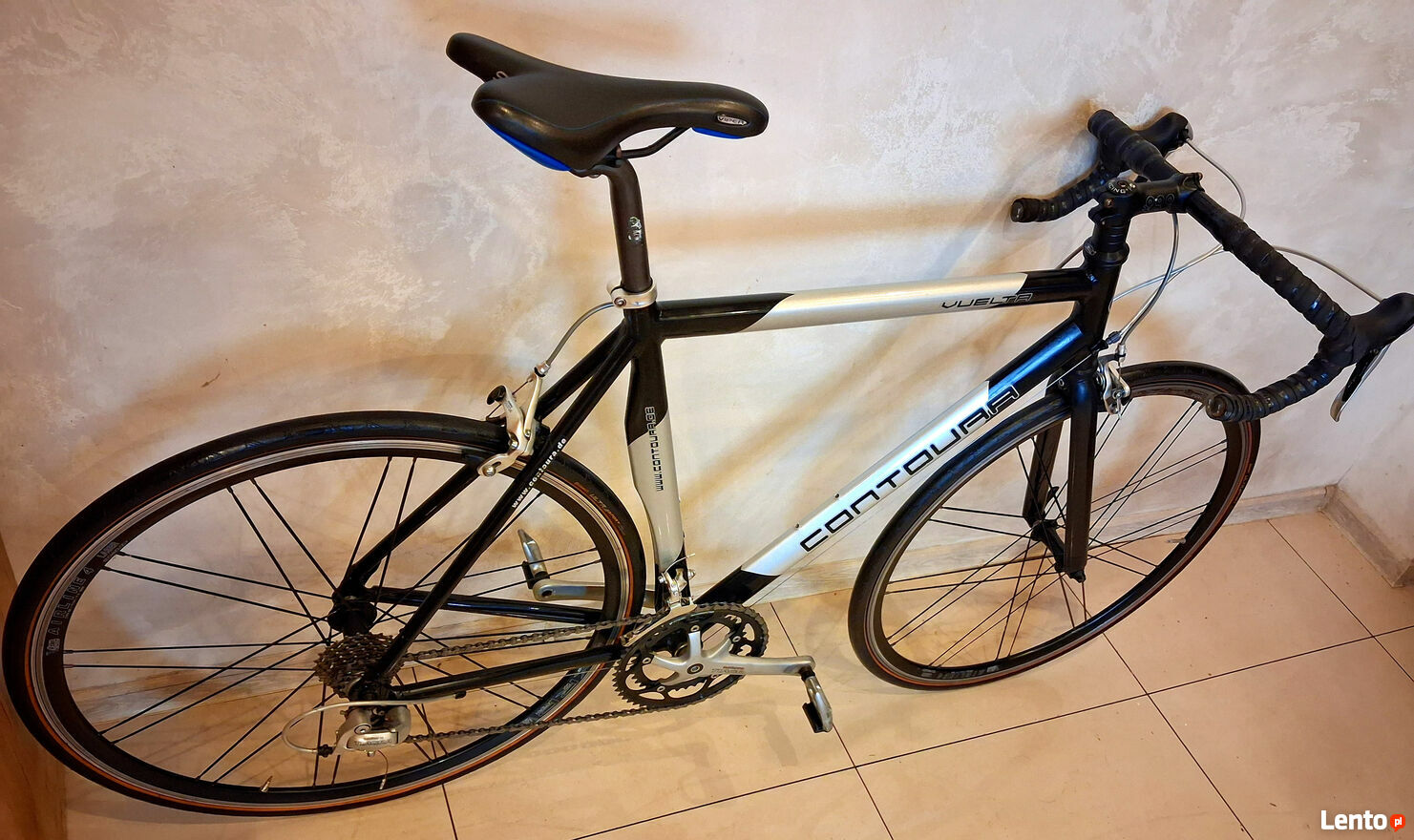 Proszę nie licytować bez wcześniejszej rozmowy tel. w celu sprawdzenia dostępności. Mam do sprzedania bardzo lekki duży rower szosowy Contoura Vuelta na osprzęcie Shimano Tiagra. Bardzo dobra firma i osprzęt. Nowoczesna konstrukcja i super osprzęt, rower jest leciutki dopracowany w szczegółach. Rewelacyjne wzmocnione koła, wysokie stożki, płaskie szprychy. Super się prezentuje. Zero luzów. Jeździ się bardzo lekko, płynnie i szybko. Piękna kolorystyka. Mało używany co widać po osprzęcie oponach. Bardzo wygodne siodełko. Super geometria ramy co wpływa na wygodną i szybką jazdę. Koła 28" rama na wzrost 165-185 cm. Rurka pozioma 57 cm. Duża możliwość regulacji do wzrostu. Ogólnie rower nadaje się do jazdy bardzo szybko na dłuższych dystansach do ścigania. Lekko kręci bez żadnych oporów. Jeździ się pewnie i stabilnie. Przełożenia 2 blaty z przodu i 9 z tyłu pozwalają na komfortową jazdę zarówno w górach jak i na terenie płaskim. Posiadam pedały spd buty spd i inne akcesoria za dopłatą. Sprzedaję tanio z powodu niespodziewanej kontuzji i dlatego nie zdążyłem zrobić na nim więcej kilometrów a szkoda aby wisiał na ścianie. Sprzedaję po bardzo atrakcyjnej cenie - okazja!!!Sprawdź zainteresowanie tym ogłoszeniem